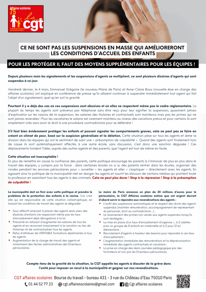 Ce ne sont pas les suspensions en masse qui amélioreront les conditions d’accueil des enfants. Pour les protéger il faut des moyens supplémentaires pour les équipes !